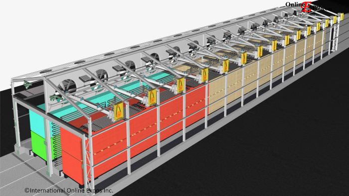 Trimming and sorting equipment.  J-bar and pusher style bin sorters and sorting equipment for lumber. High speed optimized sorting of lumber for species, size and grades in sawmills, planermills and remanufacturing plants.